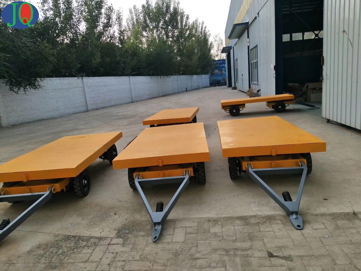 平板車(chē)一般采用充氣式實(shí)心輪胎,板面高度低、裝載量大。無(wú)破胎、爆胎的危險(xiǎn)。安全、簡(jiǎn)單而耐用。他自身無(wú)動(dòng)力,需要又牽引車(chē)或者叉車(chē)來(lái)進(jìn)行拖帶。通常由一輛或多輛平板車(chē)和一臺(tái)叉車(chē)或牽引車(chē)組成一列車(chē)輛來(lái)進(jìn)行貨物平面運(yùn)輸或大型設(shè)備的搬運(yùn)工作。廣泛應(yīng)用于機(jī)場(chǎng)、港口、火車(chē)站、工廠和大型倉(cāng)庫(kù)。大大的提高了貨物中轉(zhuǎn)平移的效率。減少叉車(chē)和人力的消耗成本。