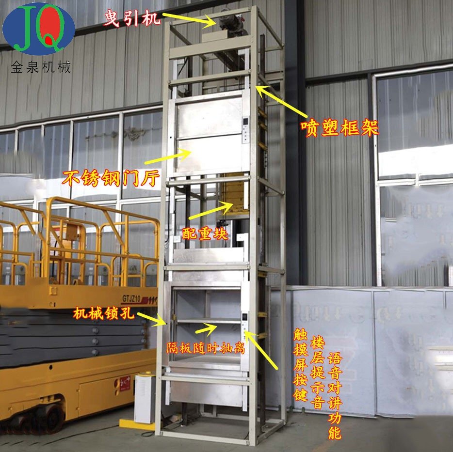 傳菜升降機(jī)是指用于賓館、廚房、食堂、飯店、 幼兒園、商廈、工廠等部門,用于傳送食品、餐具、日用品的電梯。傳菜升降機(jī)一般分為窗口式傳菜升降機(jī)和落地式(或地平式)傳菜升降機(jī)