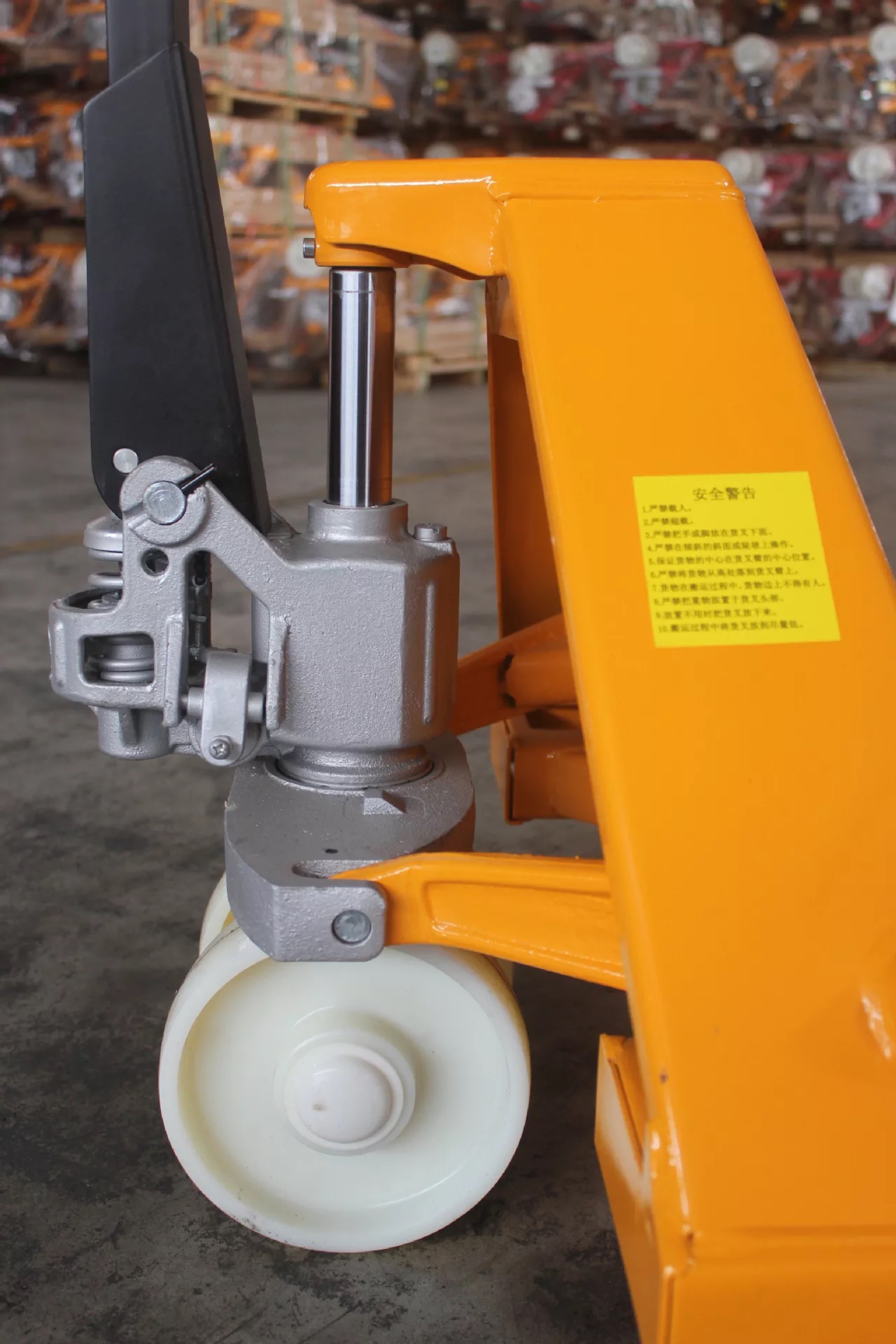 手動搬運車操作簡單,使用方便。手柄設計符合人體工程學原理,具有三大功能:提升、搬運、放下。整體鑄造油缸,外形美觀,堅固耐用,優(yōu)質(zhì)鋼板打造,鍍鉻活塞桿,內(nèi)部溢流閥提供過載保護,有效避免超載使用,降低維修費用。是車間貨物搬運的好幫手。