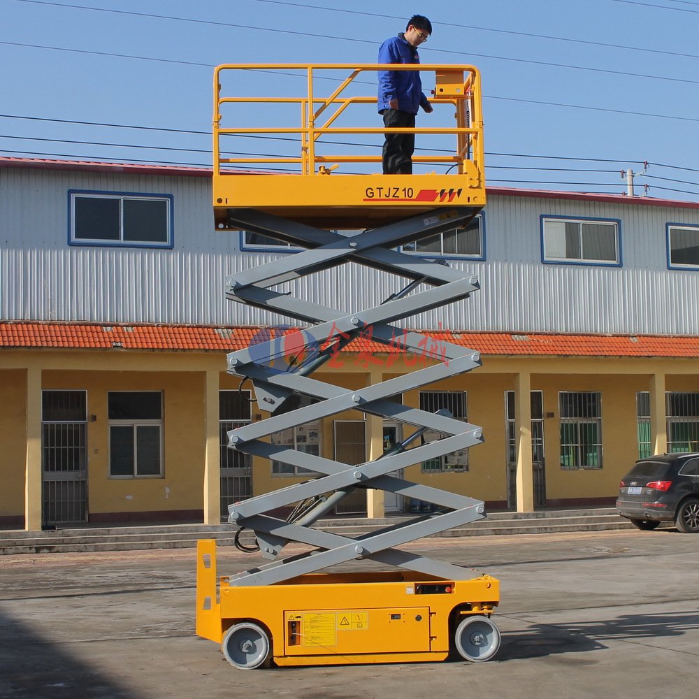車載剪叉式升降機(jī):集四輪移動與二輪牽引于一身,采用汽車、三輪車或電瓶車底盤做平臺底 架,利用本車發(fā)動機(jī)或直流電做動力,既可行駛又可驅(qū)動平臺升降,廣泛用于城建、油田、交通、市政、廠區(qū)等行業(yè)的高空作業(yè)。