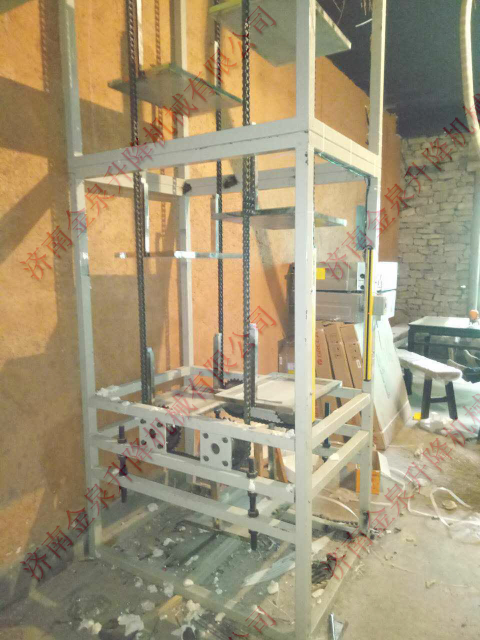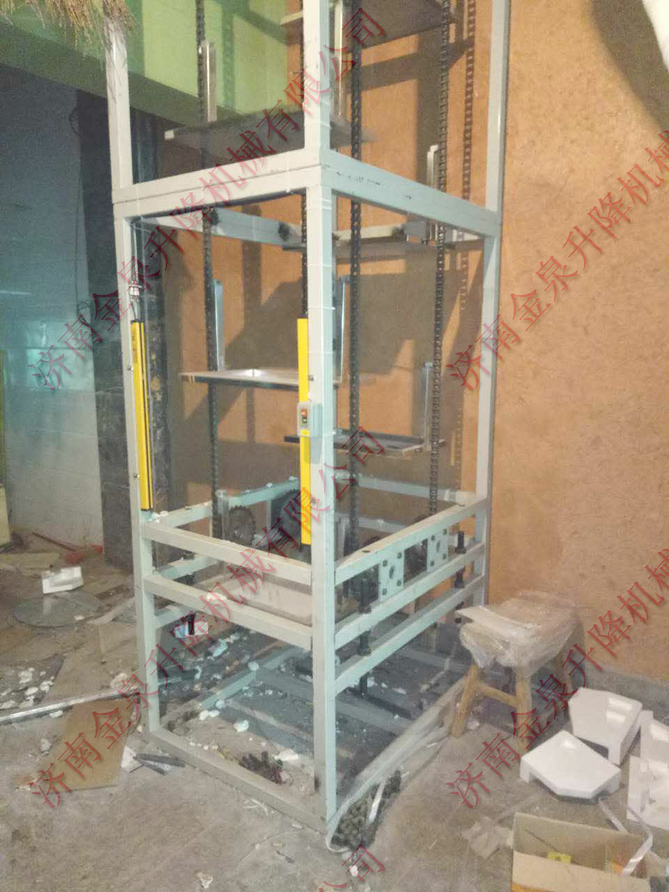 2.垂直液壓提升機(jī):采用液壓做為驅(qū)動(dòng),速度比雜物電梯稍慢